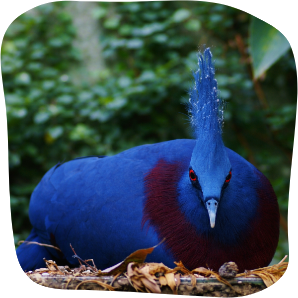 Parmi les espèces présentes, les visiteurs peuvent observer les diamants de Gould, ou encore le goura de Victoria, impressionnant pigeon terrestre à la grande crête de plumes finement dentelées.